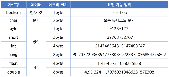 [int, byte, short, long] / [float, double] / [boolean]์ผ๋ก